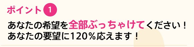 A:いいえ、完全に無料です!あなたの素直なご希望をお伝えください。