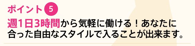 週1日3時間から働けます!もちろん、週4〜6日働いてガッツリ稼ぐこともできます!